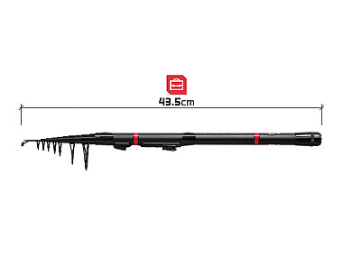Stevige geleideogen garanderen een soepel lijnverloop, terwijl de praktische reelhouder snelle en veilige montage van uw molen mogelijk maakt. Elegant, functioneel en extreem compact: de PocketROCKET 2.40 m is een must-have voor elke mobiele visser.