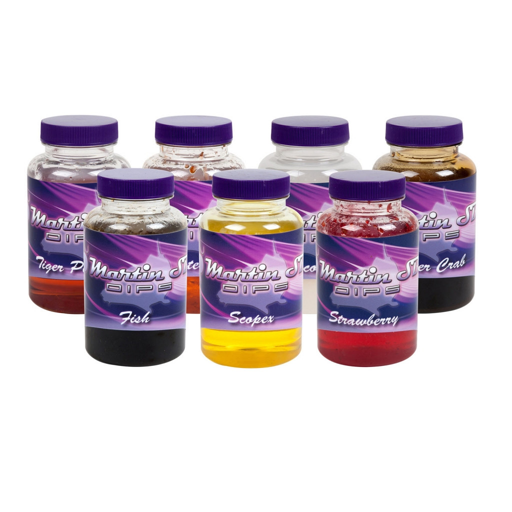 Martin SB dips geven je aas net dat beetje extra attractiviteit waardoor het sneller gedetecteerd zal worden. Juist in de winter kan een goede dip het verschil maken tussen vangen of blanken. Op zwaar beviste wateren kan een kwalitatief hoogwaardige dip zelfs de meest behoedzame vissen over de streep trekken. Soaken kan gedurende een paar minuten, maar ook meerdere dagen voor een langdurigere werking. In alle Martin SB dips zijn dezelfde flavours en liquids verwerkt als in de boilies van Martin SB. De dips zijn ook heel goed te gebruiken in combinatie met grondvoer, feeder- en boiliemix.